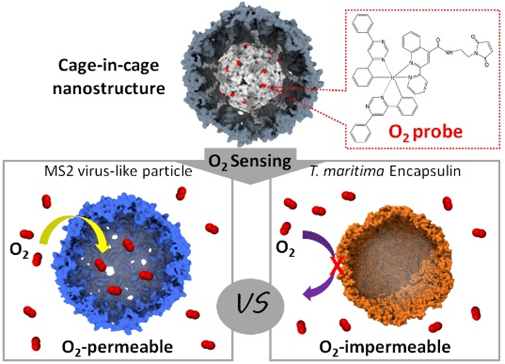 PNC廣泛存在于生物界,是由蛋白亞基通過精確有序自組裝形成的籠形納米結構(如病毒衣殼、鐵蛋白等),是限域催化、靶向遞送、納米疫苗等前沿領域的理想平臺。PNC的多孔性可賦予其選擇性物質通透性從而精確調控功能。其中,PNC的可控氧氣通透性為氧敏感或氧響應型催化、藥物遞送、傳感等應用提供了可能,近年來越發受到關注。然而,如何定量評價和精確調控PNC的氧氣通透性目前還十分挑戰。