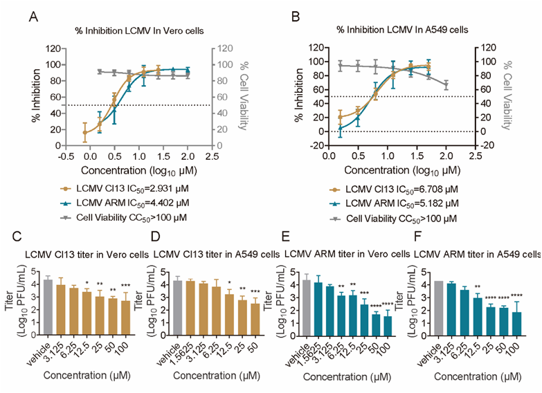 該研究團隊通過體外實驗發現,曲美替尼對LCMV的兩種主要毒株(Armstrong株和Cl13株)在多種細胞系中均表現出顯著抑制作用。進一步體內實驗表明,曲美替尼治療可顯著降低感染小鼠脾臟和肝臟中的病毒載量,緩解組織病理損傷,保護小鼠免受病毒致死性攻擊。此外,研究表明曲美替尼通過干擾病毒生命周期的多個關鍵環節發揮作用:(1)抑制膜融合;(2)干擾基因組復制;(3)調控MEK/ERK宿主信號通路,從而遏制病毒增殖。